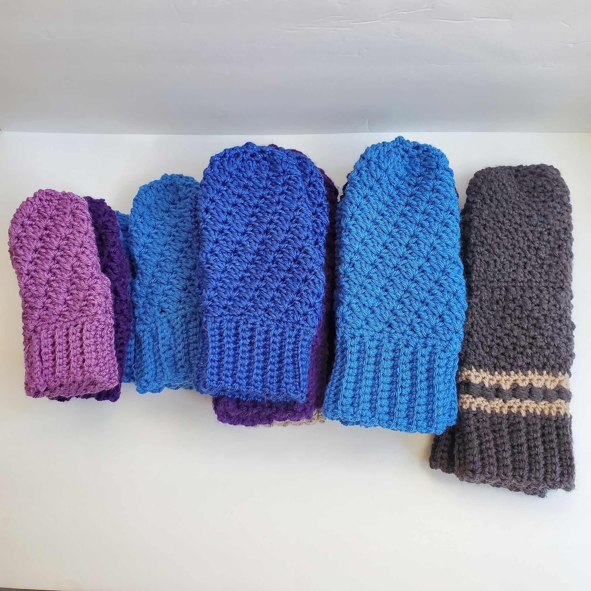 I made these mittens as a challenge and new project to try out! I really enjoyed making the Willow gloves, so I have made mostly that design thus far. All of these are made with Acrylic yarns.